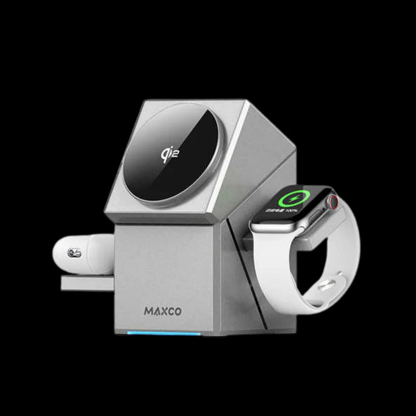 3-in-1 wireless charging station (phone, watch, earbuds).